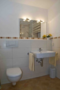 Hell und mit großem Fenster (mit Sichtschutzvorhang).