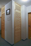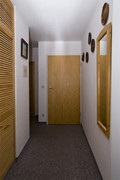 Auch die Diele samt Garderobe ist aus hellem Massivholz und bietet viel Platz für Jacken, Mäntel und Schuhe.