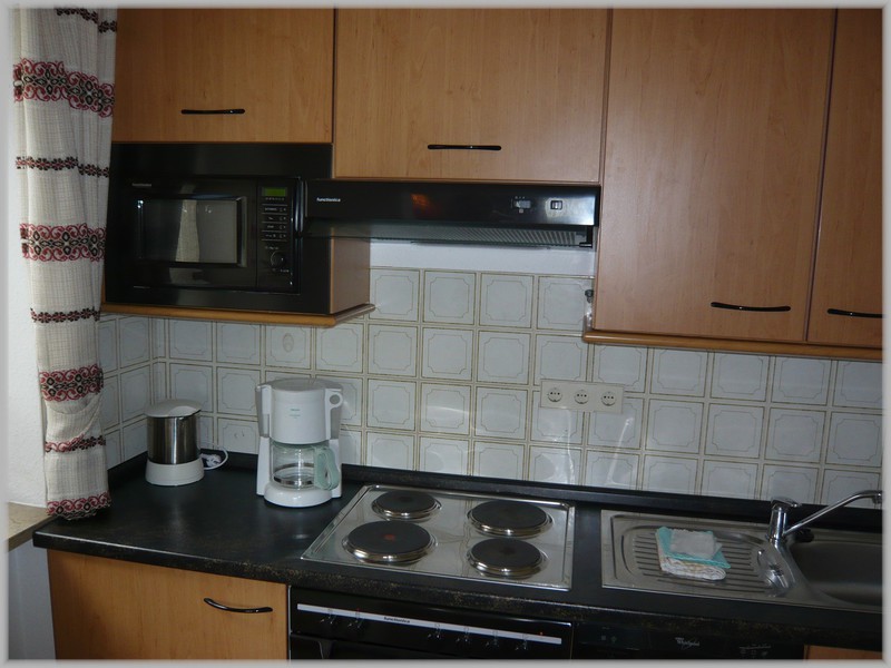 Die seperate Küche ist komplett ausgestattet, mit einem Vierplatten-Elektroherd, Backröhre, Mikrowelle, Külschrank, Spülmaschine, Kaffemaschine, Toaster, Wasserkocher.